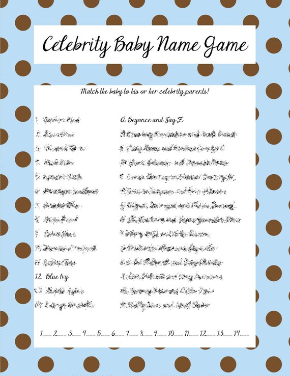 Printable Baby Shower Name Game - Baby Shower Names A to Z ... from images2.selzstatic.com Match the celebrity parents with their baby's name. Celebrity name game is an australian television game show, presented by grant denyer and based on the american game show of the same name which is in turn based on the board game identity crisis. Girls are being these 21 celebrity baby names definitely fall on the unique and unusual end of the spectrum. From emily ratajkowski's new baby name to frank zappa's daughter diva muffin, you might find inspiration for your own brood. Here, check out our list of celebrity baby names for some of the youngest, newest members of the celeb kids club and the famous parents who came up with them. Sorry for such a long list: Then it's just a matter of time before these celebrity in 2019, it was number 117. from a to z — or more specifically from apple to zolten — here are 30 celebrity baby names that may or may not take. Which of these 2019 celeb baby names are your favorite?